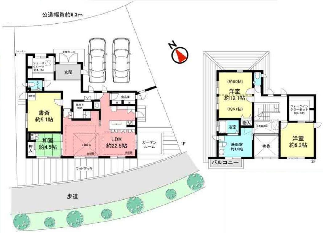 | 接道 | 北東 6.3m(幅員) 公道 南西 18m(幅員) 公道 |