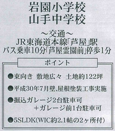 | 交通 | JR東海道線 JR芦屋駅まで バス10分 停歩1分 |