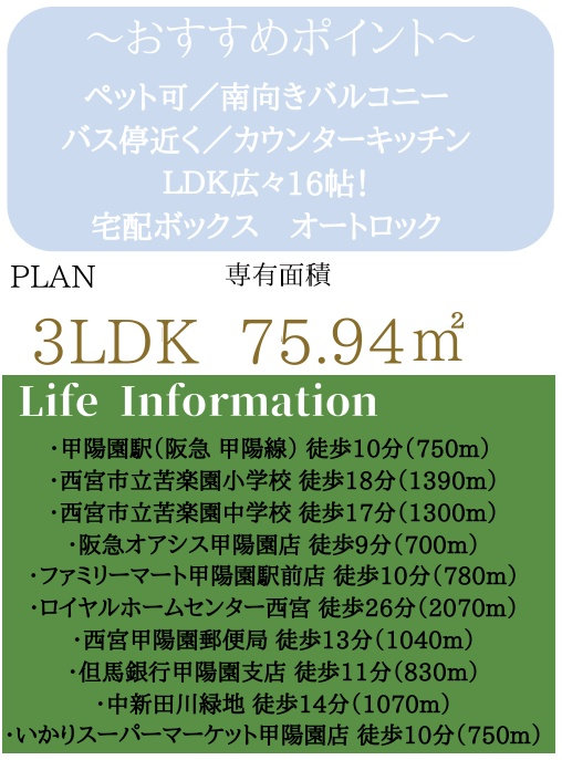 ◆阪急「甲陽園駅」徒歩9分/「苦楽園口駅」徒歩17分/阪急「夙川駅」バス10分「夙川短大前」バス停まで徒歩1分
