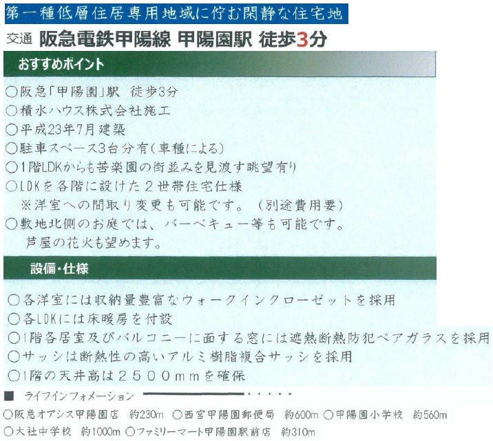 交通 | 阪急甲陽線 甲陽園駅まで 徒歩3分 |