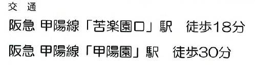 交通 阪急甲陽線 苦楽園口駅まで 徒歩18分