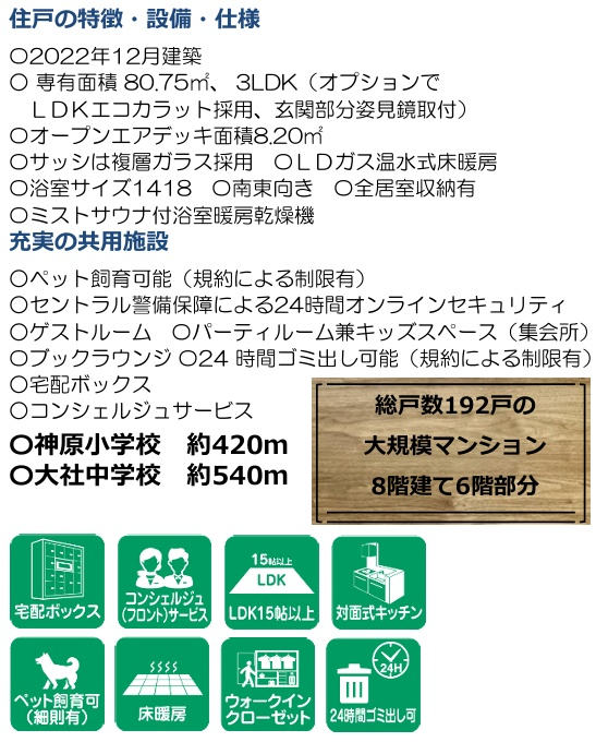 学区 | 小学校区:神原小学校 560m 中学校区:大社中学校 720m |