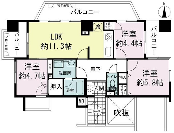 ◆専有面積60.78㎡の3LDKです/5階のお部屋で眺望も良好♪
