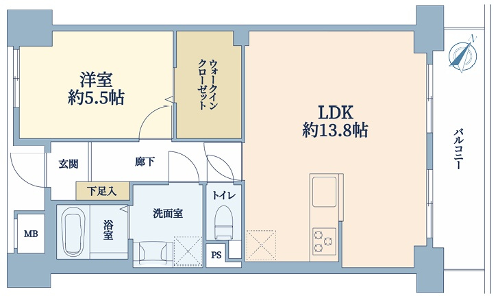 ◆LDKは約13.8帖あり/洋室約5.5帖は広いウォークインクローゼット付/バリアフリー設計/トランクルーム付(使用料無料)