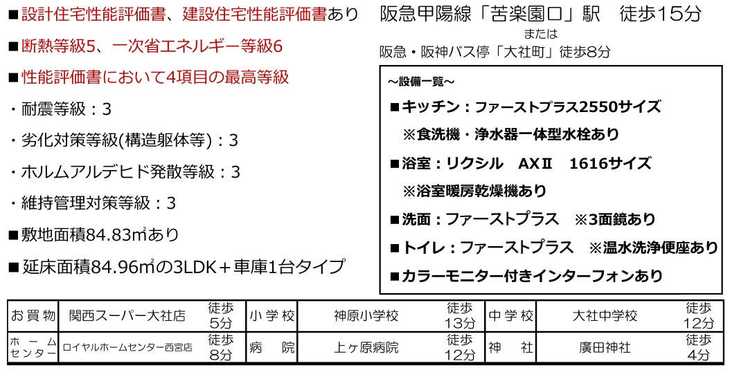 交通 | 阪急甲陽線 苦楽園口駅まで 徒歩15分 |