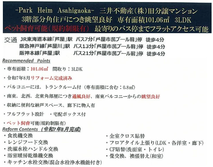 交通 | JR東海道線 JR芦屋駅まで バス8分 停歩3分 |