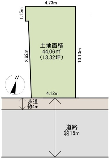 ◆南側公道幅員約14.9mに間口約4.1mが面した整形地です