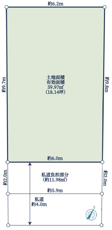 接道 | 南 4m(幅員) 私道 6m(接面) |