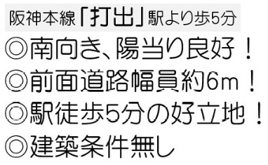 ◆阪神「打出駅」徒歩5分/JR「芦屋駅」徒歩19分/JR「芦屋駅」バス5分「阪神打出」バス停徒歩3分
