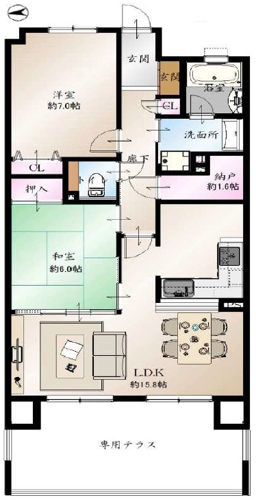 ◆専有面積68.26㎡の2S LDKです