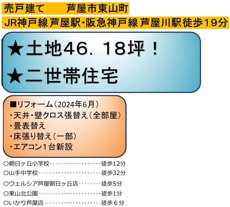 ◆JR「芦屋駅」徒歩15分/阪急「芦屋川駅」徒歩15分/JR「芦屋駅」へバス7分「東山町」バス停まで徒歩2分