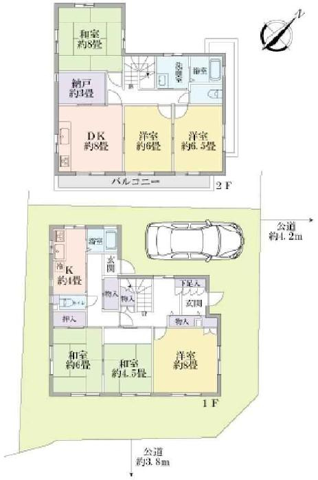 北東 4.2m(幅員) 公道 13.1m(接面)