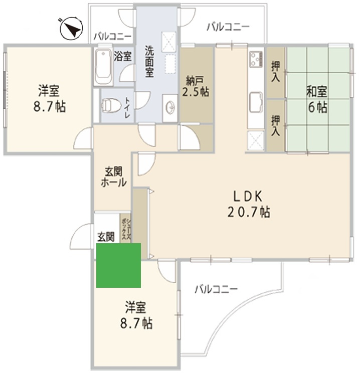 ◆LDKは約20.7帖あり/全室6帖以上で各室に窓あり/廊下に納戸あり/キッチンと洗面室と浴室と納戸に窓あり/バルコニー3ヶ所付