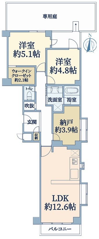 ◆LDKは約12.6帖あり/全居室に窓あり/納戸約3.95帖は洋室です/地下1階にトランクルームあり(使用料無料)