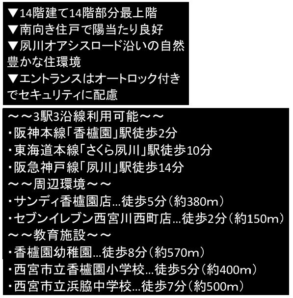 ◆阪神「香櫨園駅」徒歩2分/JR「さくら夙川駅」徒歩10分/阪急「夙川駅」徒歩13分