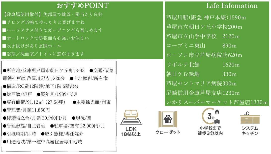 | 所在地 | 芦屋市朝日ケ丘町13-43 1号棟 |