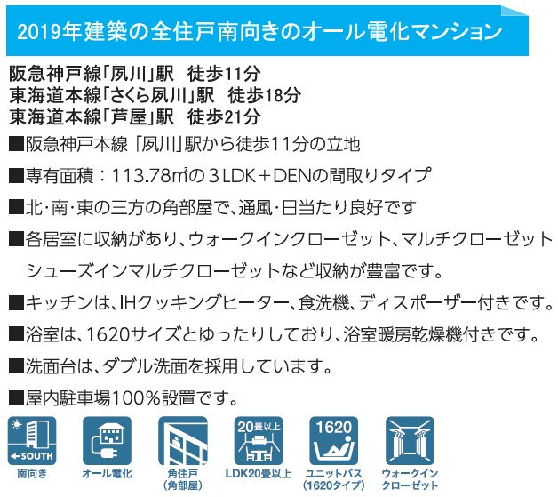 ◆阪急「夙川駅」徒歩11分/JR「さくら夙川駅」・徒歩18分/JR「芦屋駅」徒歩22分/阪神「香櫨園駅」徒歩19分/山手幹線に「みなと観光」路線バスあり
