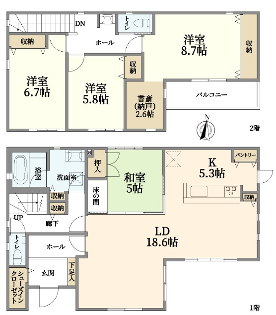 ◆LDKは約23.9帖あり/オープンカウンターキッチン/全居室に南向きの窓と収納あり/トイレ2カ所あり/玄関にシューズインクローゼットあり