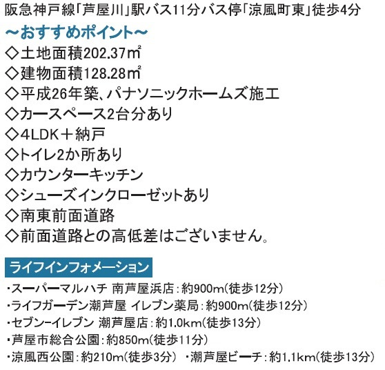 ◆JR「芦屋駅」へバス16分「涼風町」バス停まで徒歩4分/阪神「芦屋駅」へバス10分「涼風町」バス停まで徒歩4分