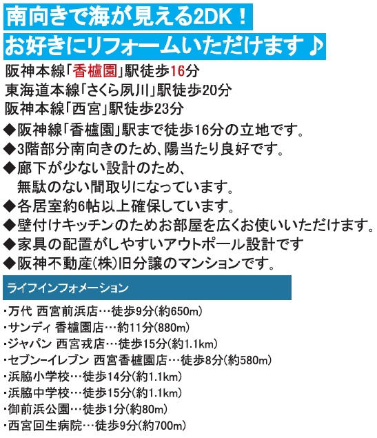 | 交通 | 阪神本線 香櫨園駅まで 徒歩15分 阪神本線 西宮駅まで バス8分 停歩1分 |