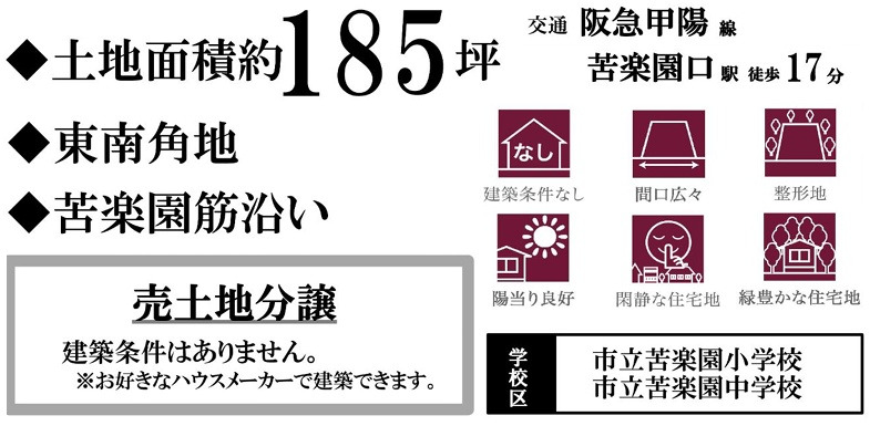 | 学区 | 小学校区:苦楽園小学校 1,100m 中学校区:苦楽園中学校 1,200m |