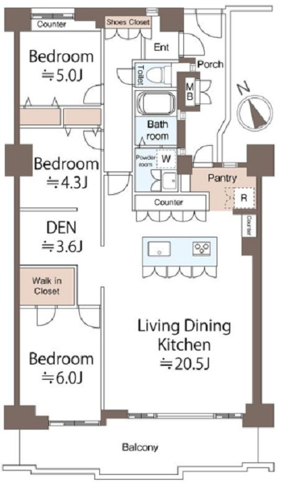 ◆専有面積95.89㎡の3LDKです /4階のお部屋で眺望あり