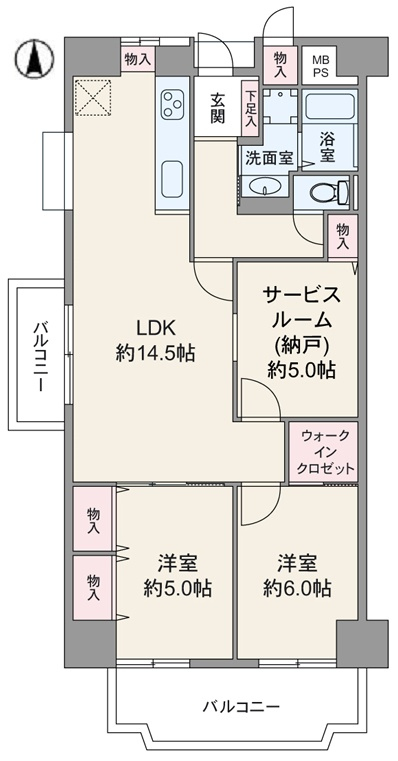 ◆LDKは約14.5帖あり/サービスルーム(納戸)約5.0帖は洋室です/バルコニーは南側と西側の2カ所にあり