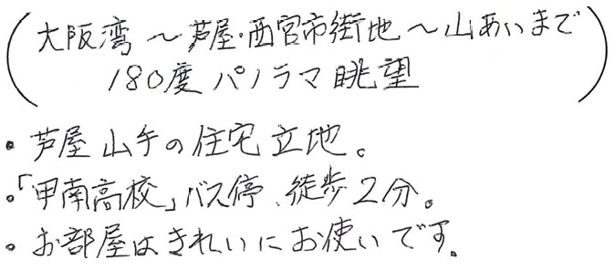 | 交通 | JR東海道線 JR芦屋駅まで バス10分 停歩2分 阪急神戸線 芦屋川駅まで バス7分 停歩2分 |